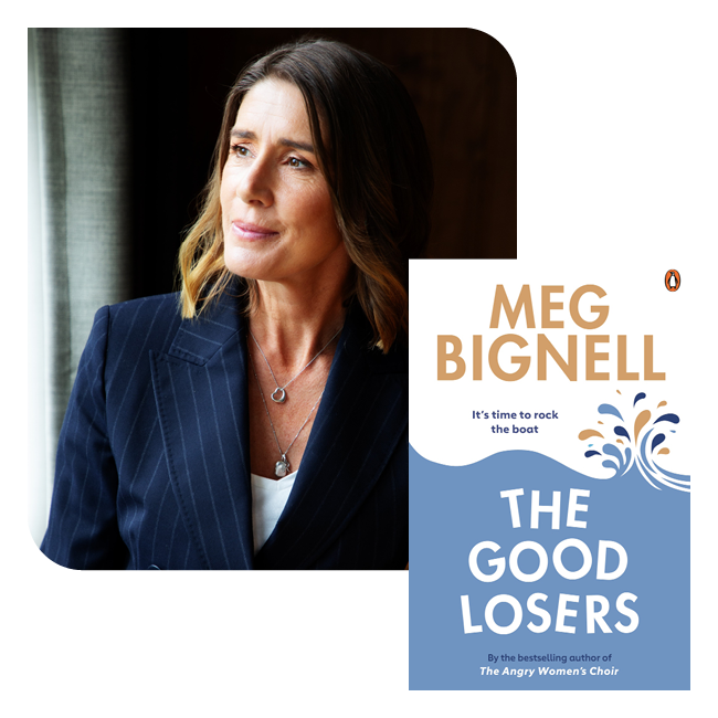 Meg Bignell was a nurse and a weather presenter on the telly before she surrendered to a persistent desire to write. She is the author of four novels and one non-fiction book. Her third novel, The Angry Women’s Choir, won the People’s Choice Award for fiction at the 2025 Tasmanian Literary Awards. She has written and performed in short films, cabaret shows and a musical. She lives on the east coast of Tasmania with her husband, three children, one dog and about a thousand cows.